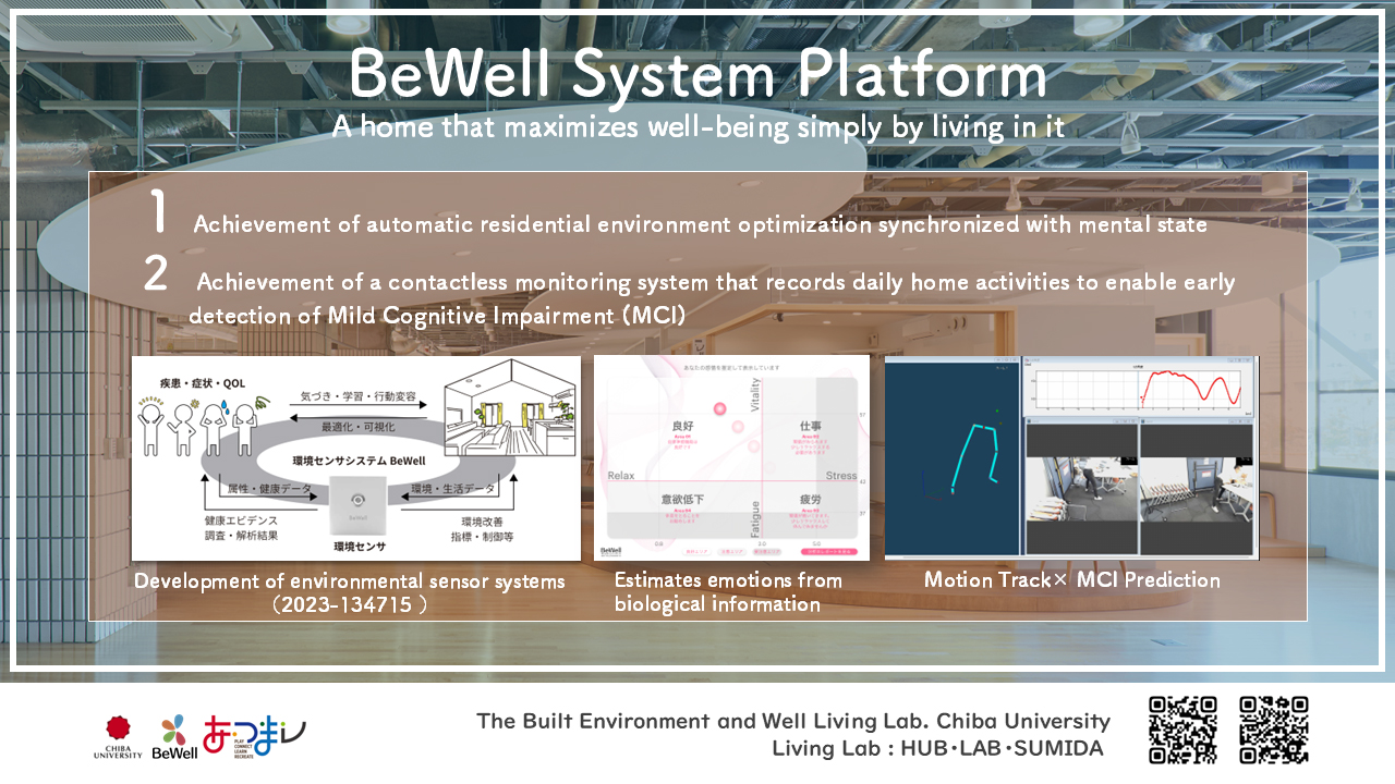 The objective is to establish the “BeWell System Platform” at the Living Lab Sumida, a research and development hub for industry-government-academia-community collaboration located at the Sumida Satellite Campus. This platform aims to promote health and well-being by measuring and providing feedback on residential environments, physiological data, and daily activities, thereby supporting the realization of Society 5.0.